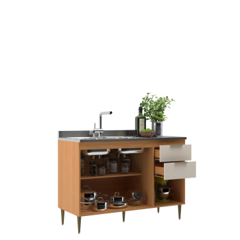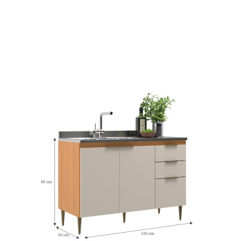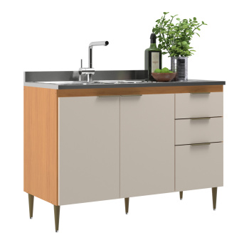 - Pés plásticos reguláveis e puxadores plásticos na cor champagne