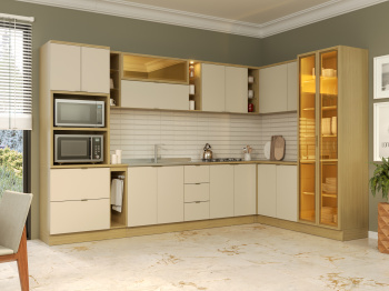 Aéreo 120cm com porta de vidro reflecta, nicho com prateleiras de vidro e sistema de iluminação spot.